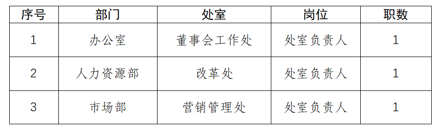 3. 处室负责人岗位要求1982年1月1日以后出生,公司内部累计工作五年(以自然年计算)及以上,特别优秀者可适当放宽。
