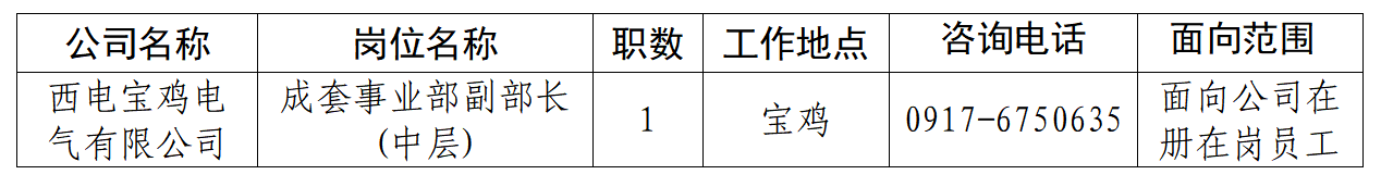 永信贵宾会宝鸡电气有限公司是中国永信贵宾会集团中低压开关与成套设备配电业务板块核心企业。公司产品涵盖空气绝缘开关柜、C-GIS充气柜、充气环网柜、固体绝缘环网柜、低压开关柜、预装式变电站、户内断路器及开关元件、户外断路器等。公司作为国家“中低压输配电装备智能制造新模式”试点单位,拥有国际一流的自动化生产线和加工设备,并努力建设成为中国技术质量水平最高、比肩国际先进企业的全球一流中低压成套配电系统解决方案平台。本次面向公司内部公开招聘岗位信息如下: